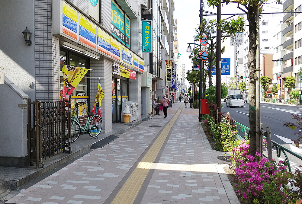 真っすぐ進んだ先に、当クリニックのある菅沼ビルがございます。1階にはまいばすけっとがございます。