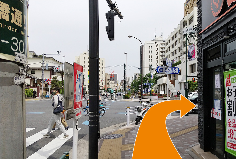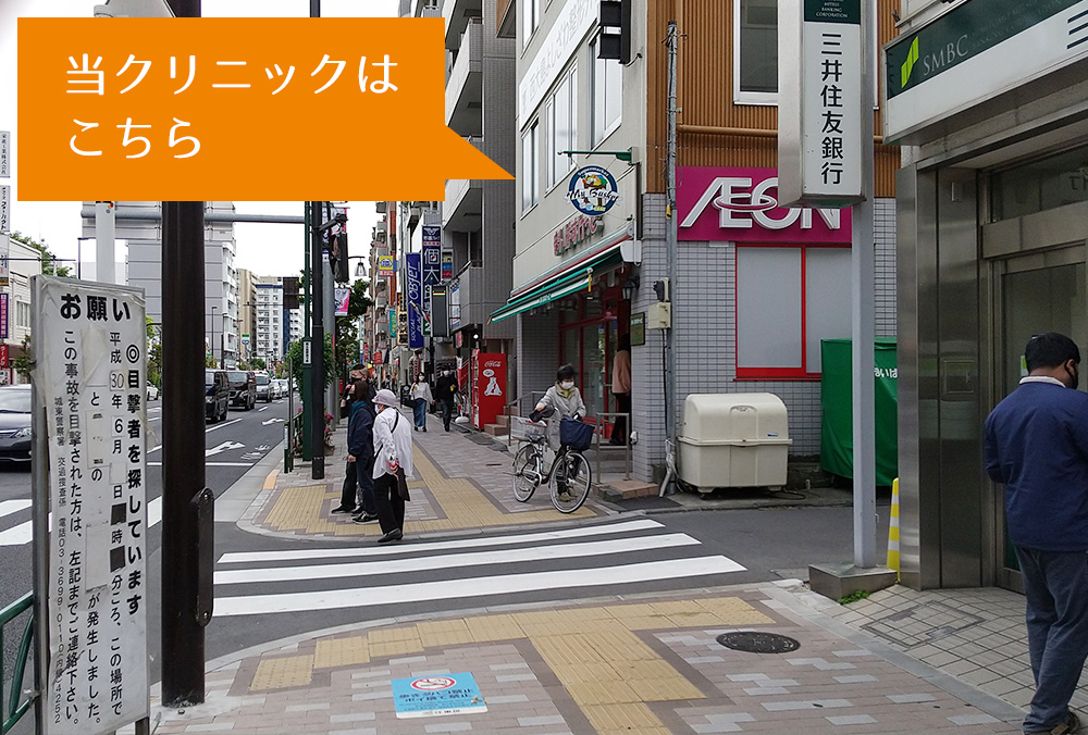 少し進んだ先に交差点があり、通り斜め向かいに当クリニックのある菅沼ビルがございますので交差点を渡ります。